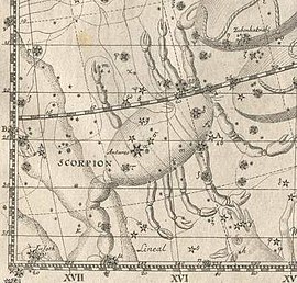 안타레스, 샤울라, 삼태성, 황도 제8궁 천갈궁, 28수 중 4번째 방수와 5번째 심수, 6번째 미수