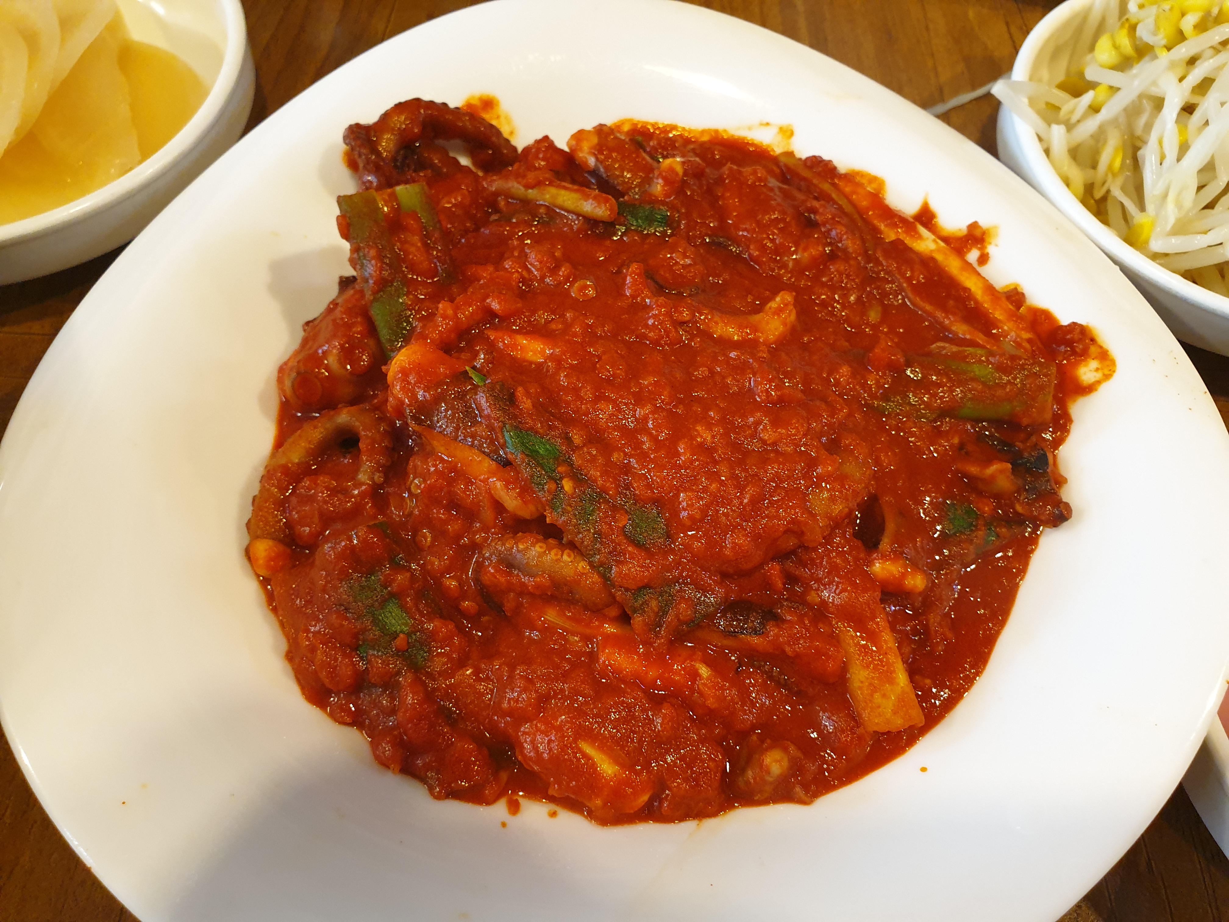어려서 부모님과 함께 방문했던 집입니다. 초등학생 때는 도저히 매워서 못 먹었습니다. 그리고 고등학생 때는 그럭저럭 먹었는데 그래도 다 먹고 나면 몇 분 동안 매운맛이 입안에 가득해서 정신이 없을 정도였습니다. 그리고 성인이 돼서 술을 배우고 소주와 함께 낙지 볶음과 조갯국을 같이 먹으니 예전 추억과 함께 정말 맛있게 먹게 되더라고요.