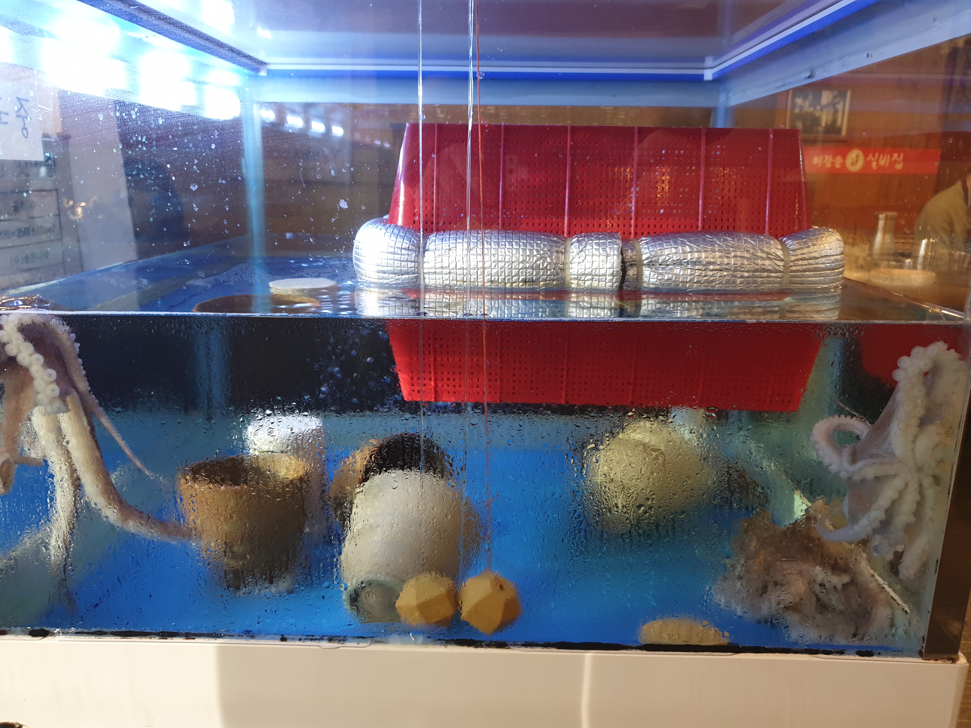 식사를 다하고 나오면서 생물 낚지가 들어있는 어항을 발견했습니다. 대충 봐도 싱싱해 보입니다.