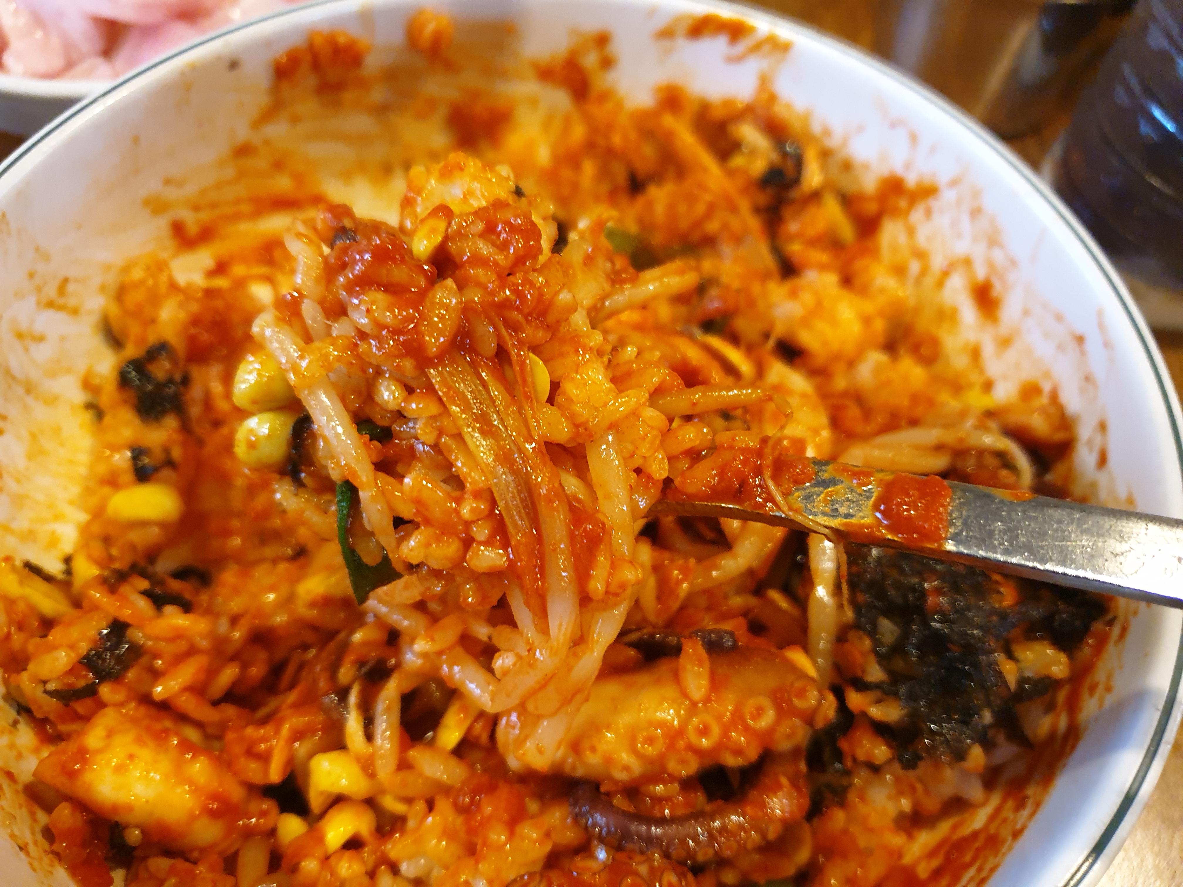 한 공기 밥이 금방 없어집니다. 입이 얼얼할 정도로 맵지만 계속 수저가 입으로 들어갑니다.