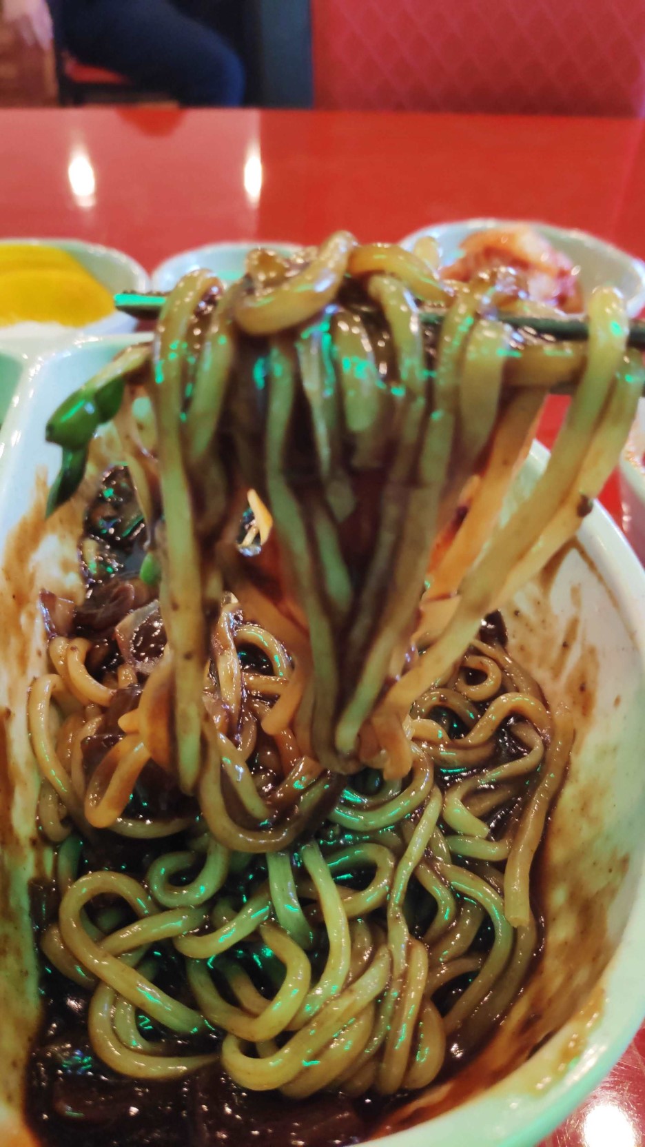 바로 내 옆 테이블에서 동남아 국적으로 보이는 손님이 탕짜면(탕수육+짜장면)을 먹고 있다.