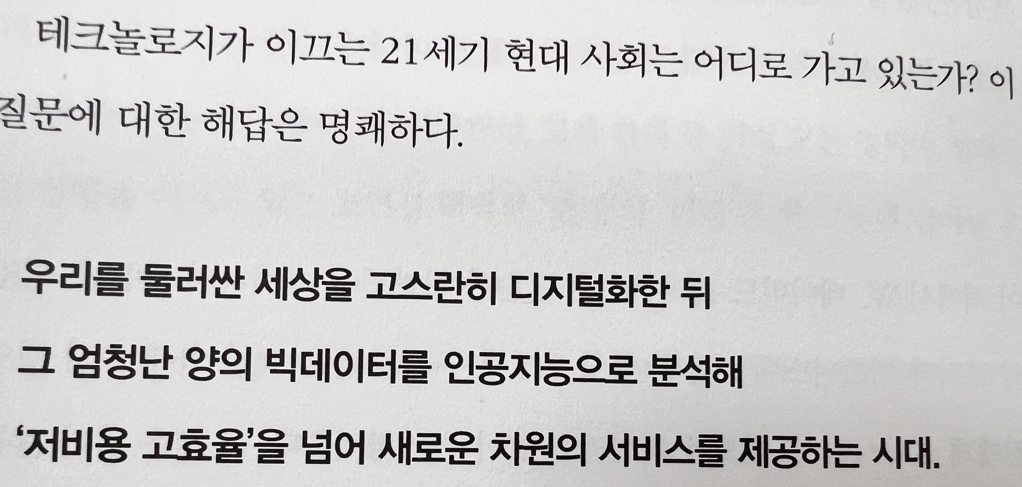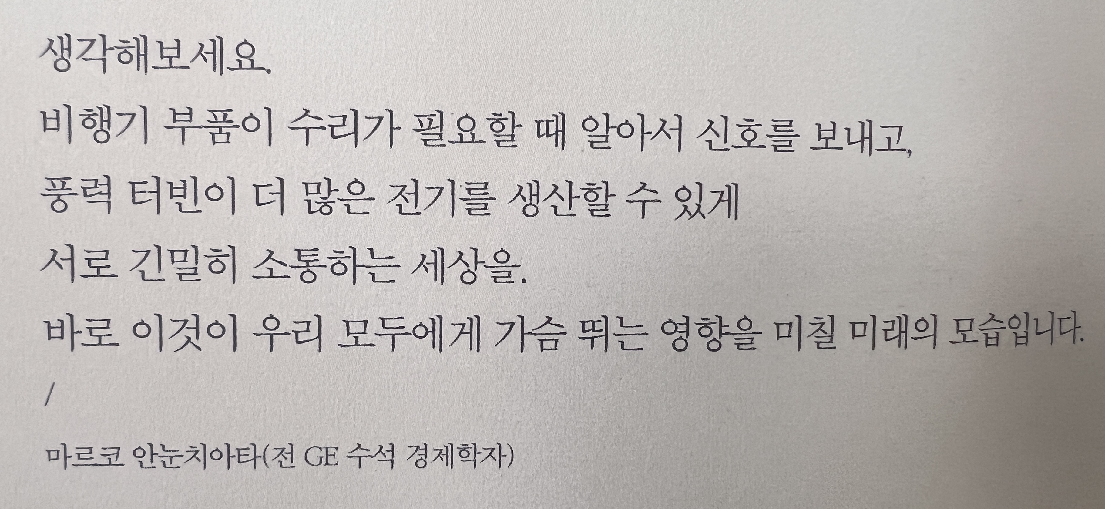 앞으로는 그런 제약이 없어질 것이다. 업무 효율을 높이는 데에 필요한 정보에 대해 모든 관련자가 동시에 접근할 권한을 갖고, 그 정보가 필요한 모든 사람에게 실시간으로 공유되는 일이 실현될 것이다. 그런데 과연 관리자가 데이터에 대한 통제권과 이용권을 기꺼이 내놓으려고 할까? 그들은 앞으로 보고 체계 및 의사결정 구조를 어떻게 다시 짤까? 관행처럼 이어온 기존의 직급 체계를 순순히 포기할까? 중요한 것은, 그럼에도 불구하고 구글이나 GE 같은 똑똑한 회사들은 한발 앞서 IoT 기업으로 탈바꿈한 덕분에 오늘날 더 적은 운영비와 더 높은 효율로 시장에서 경쟁 우위를 차지하고, 동시에 새 수입원을 창출하고 있다는 사실이다. p.64~p.65