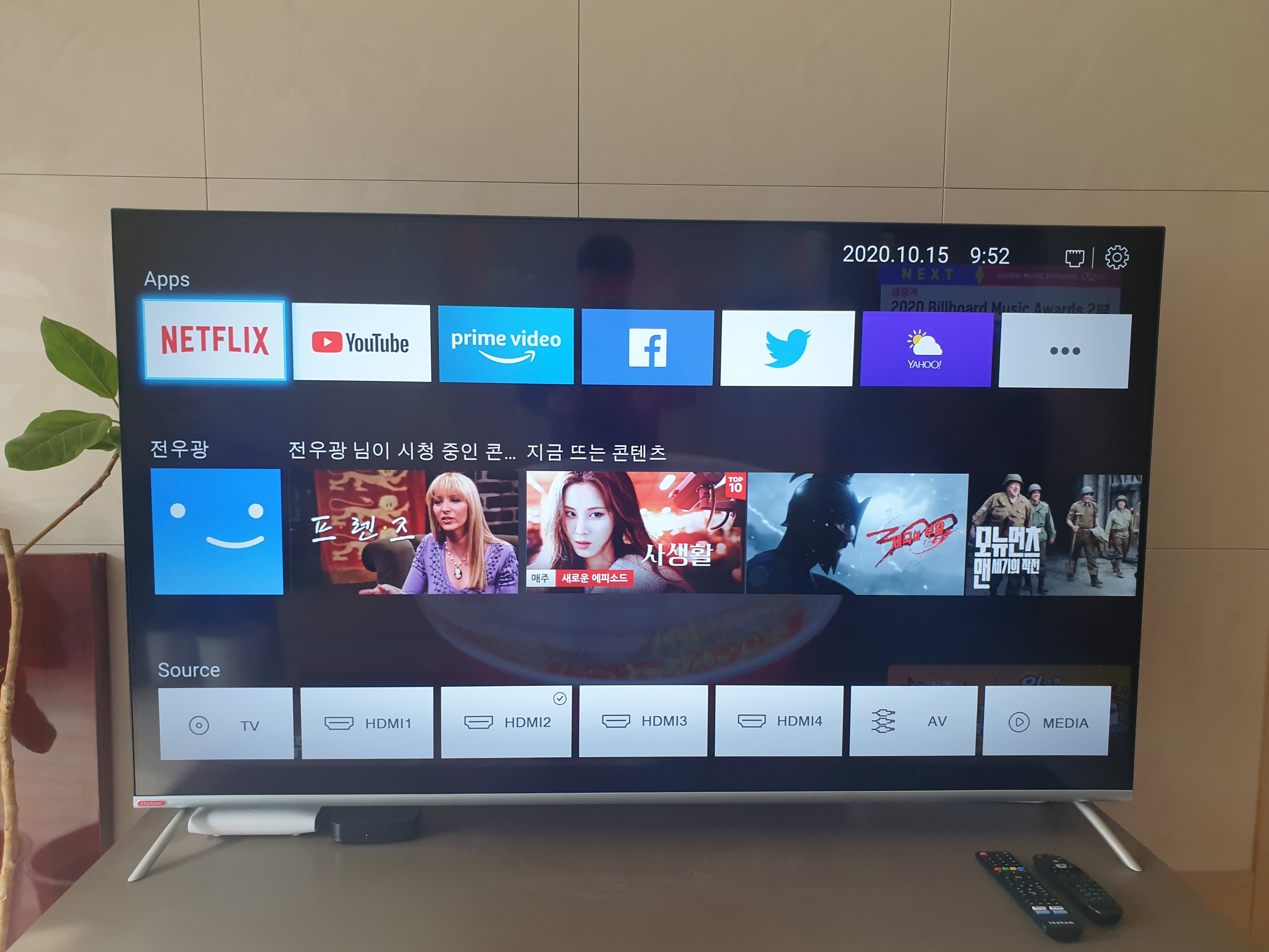 더함 노바 N651UHD를 올려놓으니기존의 거실장이 너무 작아 보인다. 이참에 새로 거실장도 구입할 예정이다. 아니 구입했다. (바움 원목 거실장 2000)