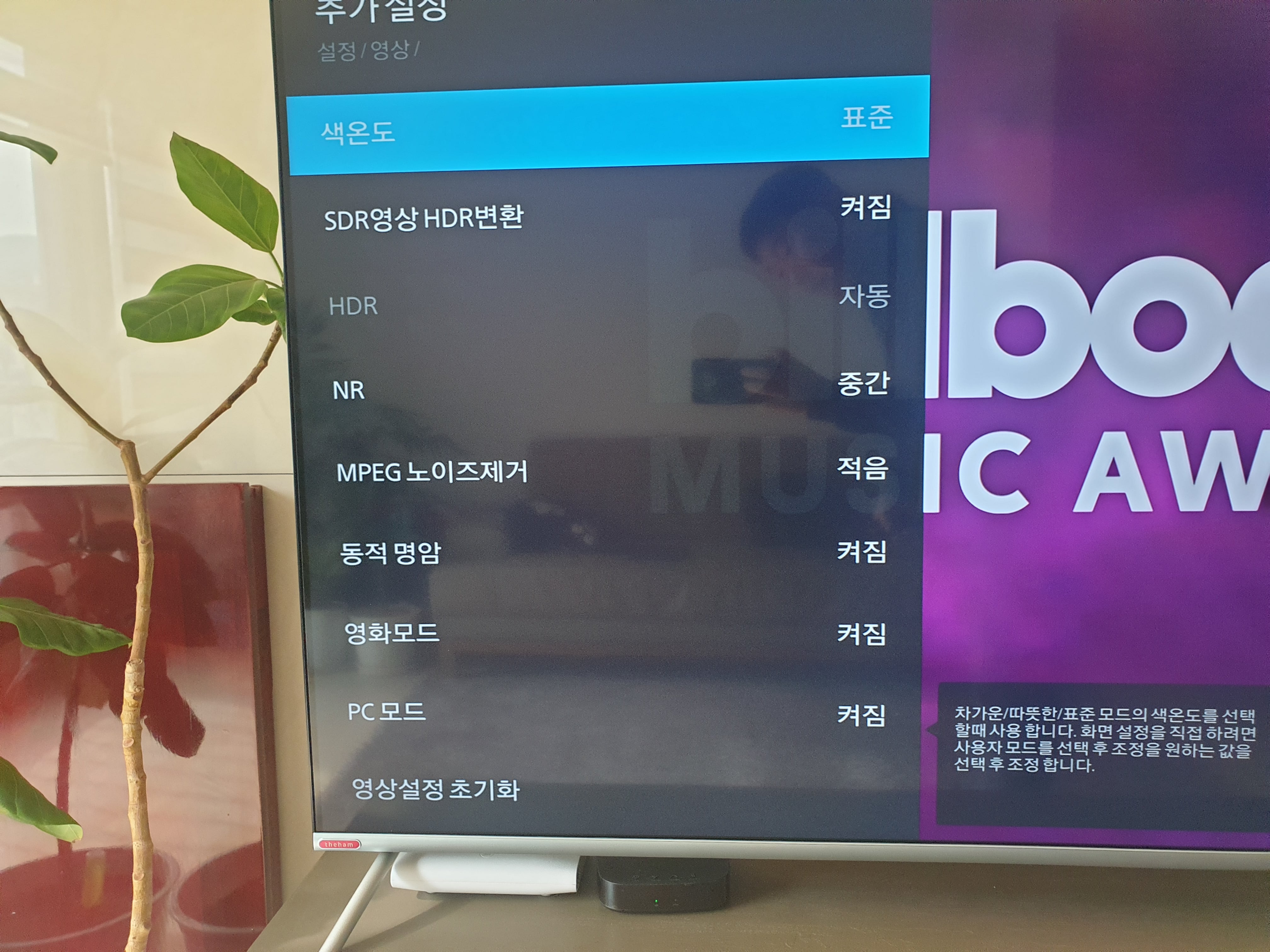 유플러스 셋톱박스를 이용하다 보니 TV 설정은 별로 사용하지 않는다. 영상 모드도 표준이 무난했다.