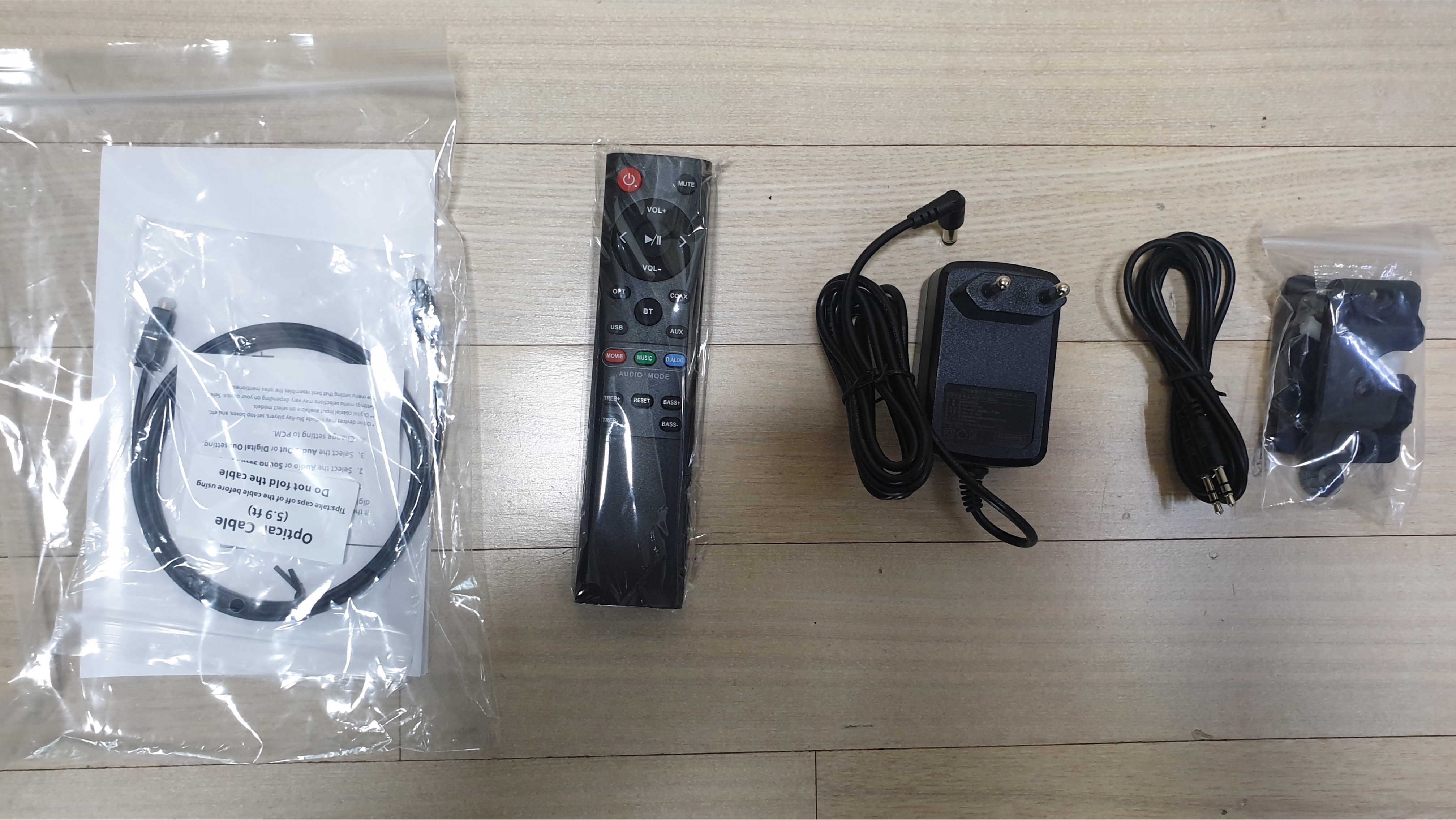 TUANTI 2.1채널 100W 구성품도 나름 알차다.(벽걸이 설치 시 필요한 부품들도 들어 있다).