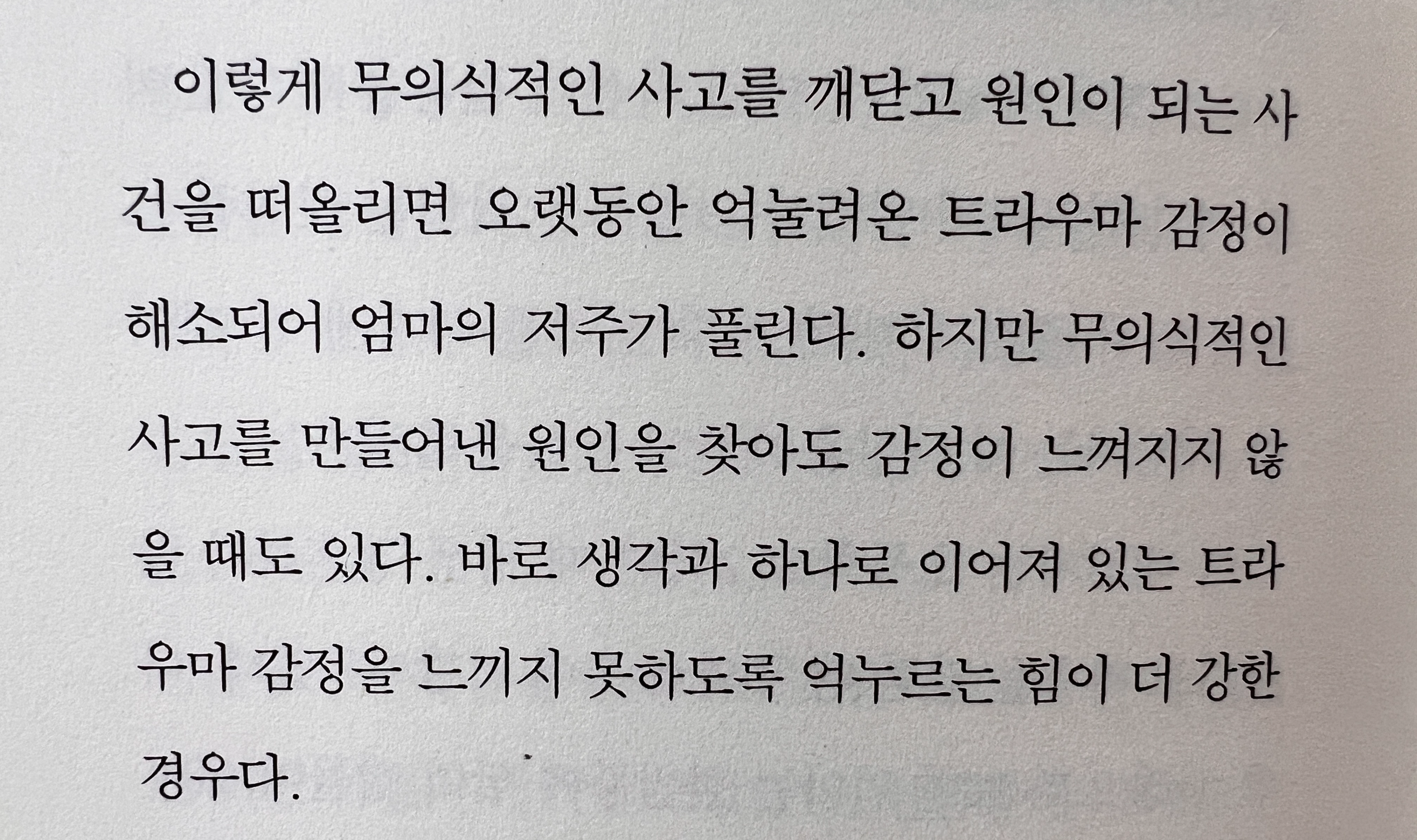어린 시절부터 엄마의 마음을 이해하려 애쓰며 살아온 나는, 책상 위에 놓인 『나는 왜 엄마가 힘들까』라는 제목의 책을 보고 손을 뻗었다. 이 책이 내게 무엇을 알려줄 수 있을지 궁금했다. 이