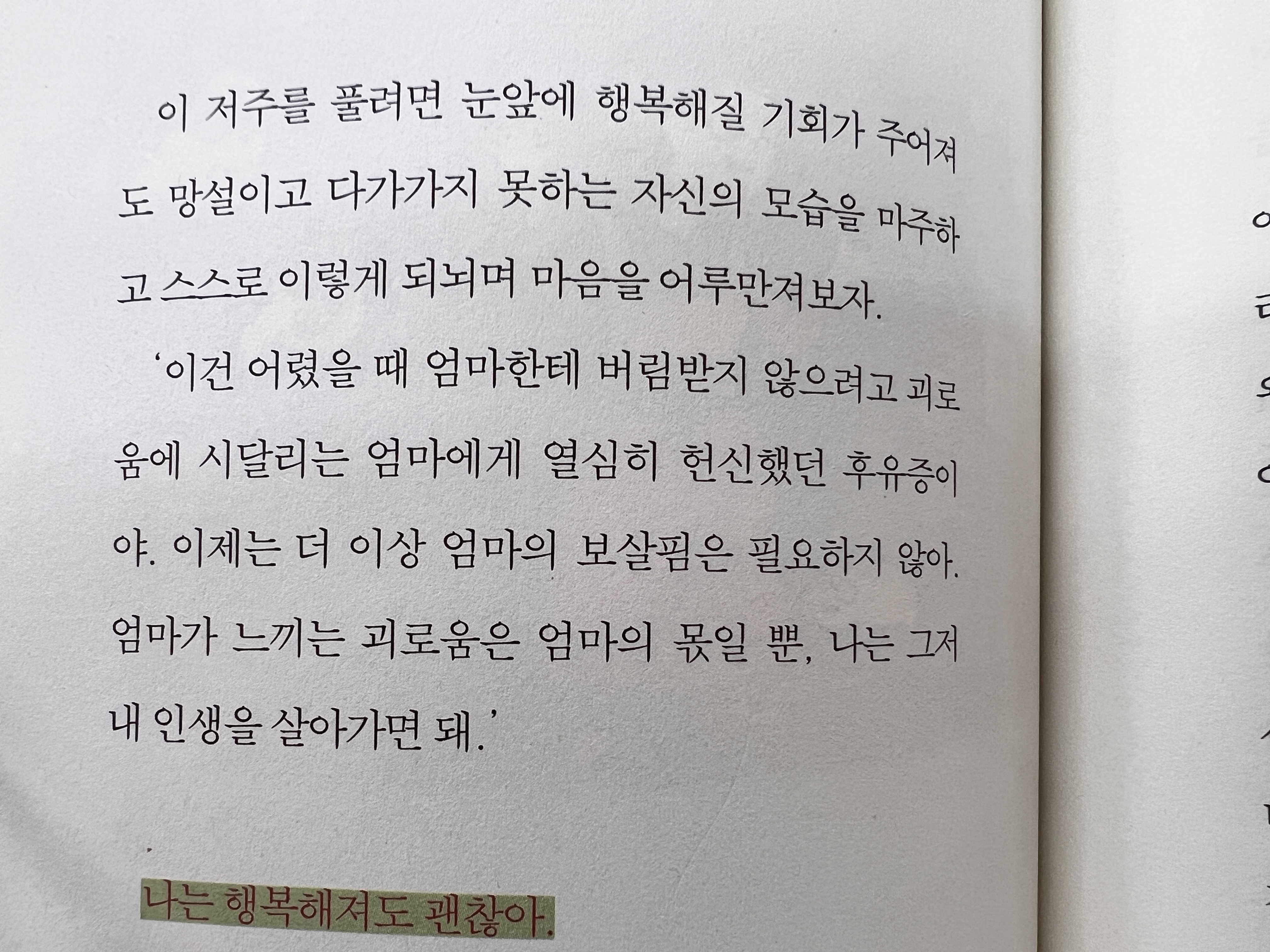 물론, 이해한다고 해서 모든 것이 해결되는 건 아니에요. 엄마를 바꾸려고 하기보다는, 우리 자신이 어떻게 변화할 수 있는지 생각해보는 게 좋아요. 엄마가 바뀔 가능성은 0%에 가깝다고 해도, 우리는 변할 수 있어요. 그 첫 걸음은 '죄책감'을 버리는 것일지도 몰라요.
