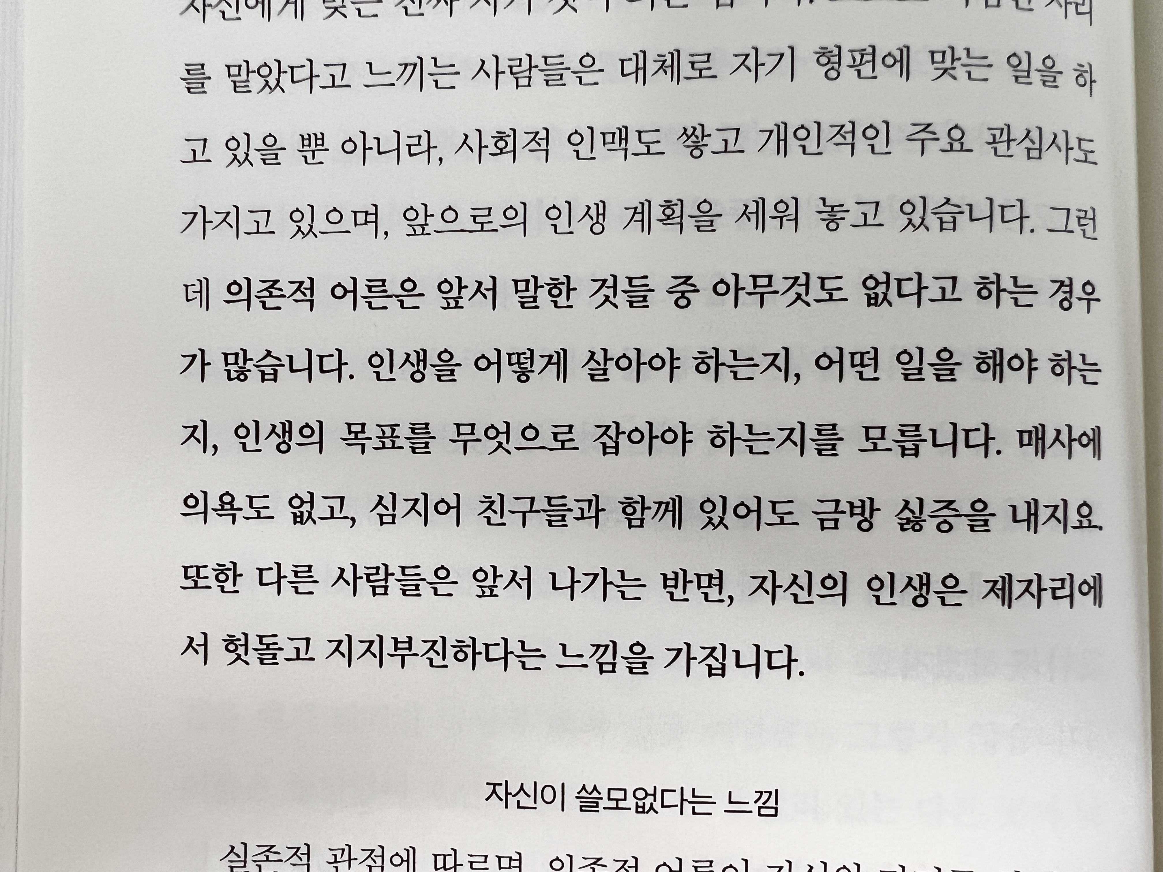 솔직히 말하면, 이 책을 처음 읽을 때는 모든 해답을 찾을 수 있을 것이라고 생각했습니다. 하지만 저자는 단순한 해법을 주지 않습니다. 오히려 그는 우리 모두가 혼자라는 사실을 받아들이고, 건강한 심리적 거리를 둘 수 있는 방법을 제시합니다.