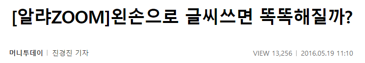 머니투데이 기자가 쓴 내용으로 제목은 ‘왼손으로 글씨쓰면 똑똑해질까?” 이다. 이 글의 결론은 이렇다.