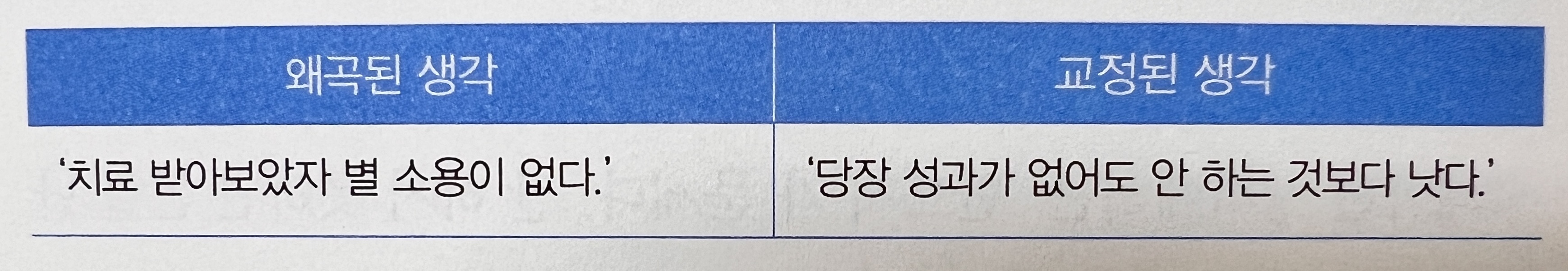 물론 당신은 ‘과연 이렇게 한다고 해서 생각이 바뀌고 증상이 호전될 수 있을까?’라고 의심할 수도 있다. 그러나 훈련은 확실히 효과가 있다. 근육을 반복적으로 단련하면 근육의 발달을 확인할 수 있는 것처럼, 뇌의 잘못된 회로(비합리적 사고)는 지속적이고 꾸준한 훈련을 통해 새로운 회로(합리적 사고)로 대체해나갈 수 있다.