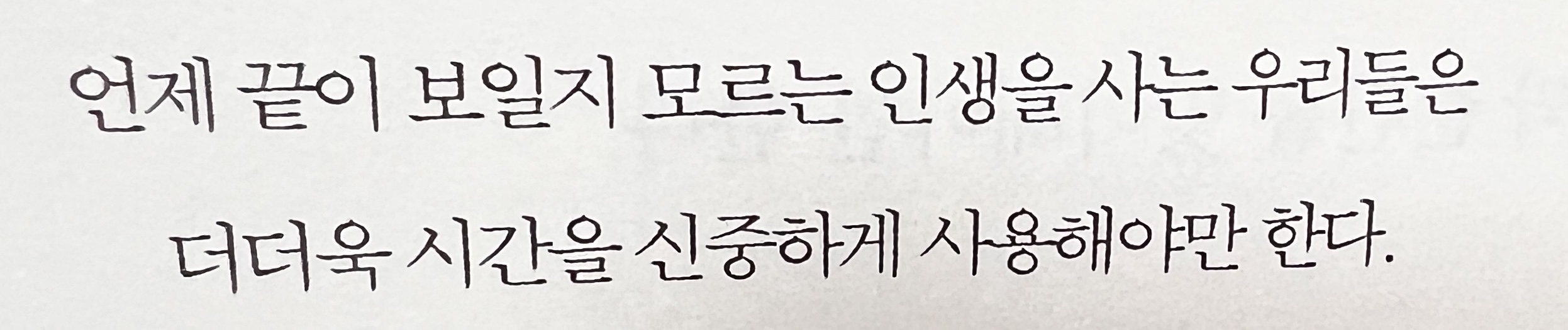 비록 천 년이 넘는 세월을 살아야 한다고 해도 우리 인생은 찰나에 지나지 않을 것이다. 이는 자명한 진실이다. 인간의 악덕은 수없이 길고 긴 시간을 한입에 집어삼킬 것이 분명하다. 인생이 눈 깜짝할 사이 손가락 사이로 빠져나가는 것이 아무리 자연스러운 일이라고 해도 이성을 통해 이를 충분히 연장시킬 수 있다. 그럼에도 시간은 재빨리 도망치려고 들 것이다. 왜냐하면 인간은 흘러가는 시간을 붙잡거나 멈추려고 하지도 않으며, 언제든 다른 것으로 대신할 수 있는 것처럼 혹은 그걸로 충분한 것처럼 세월이 가는 대로 방관하고 있기 때문이다.