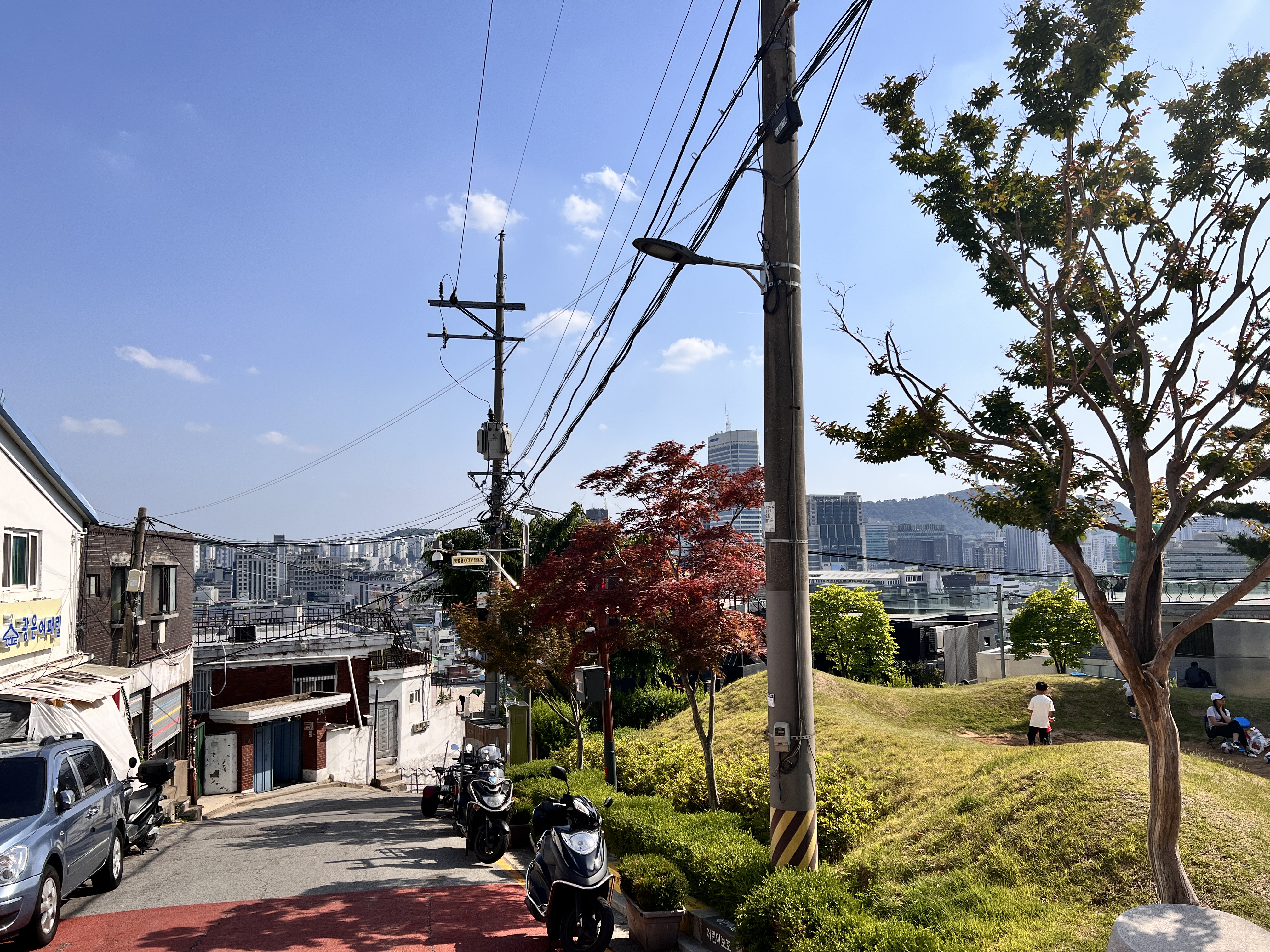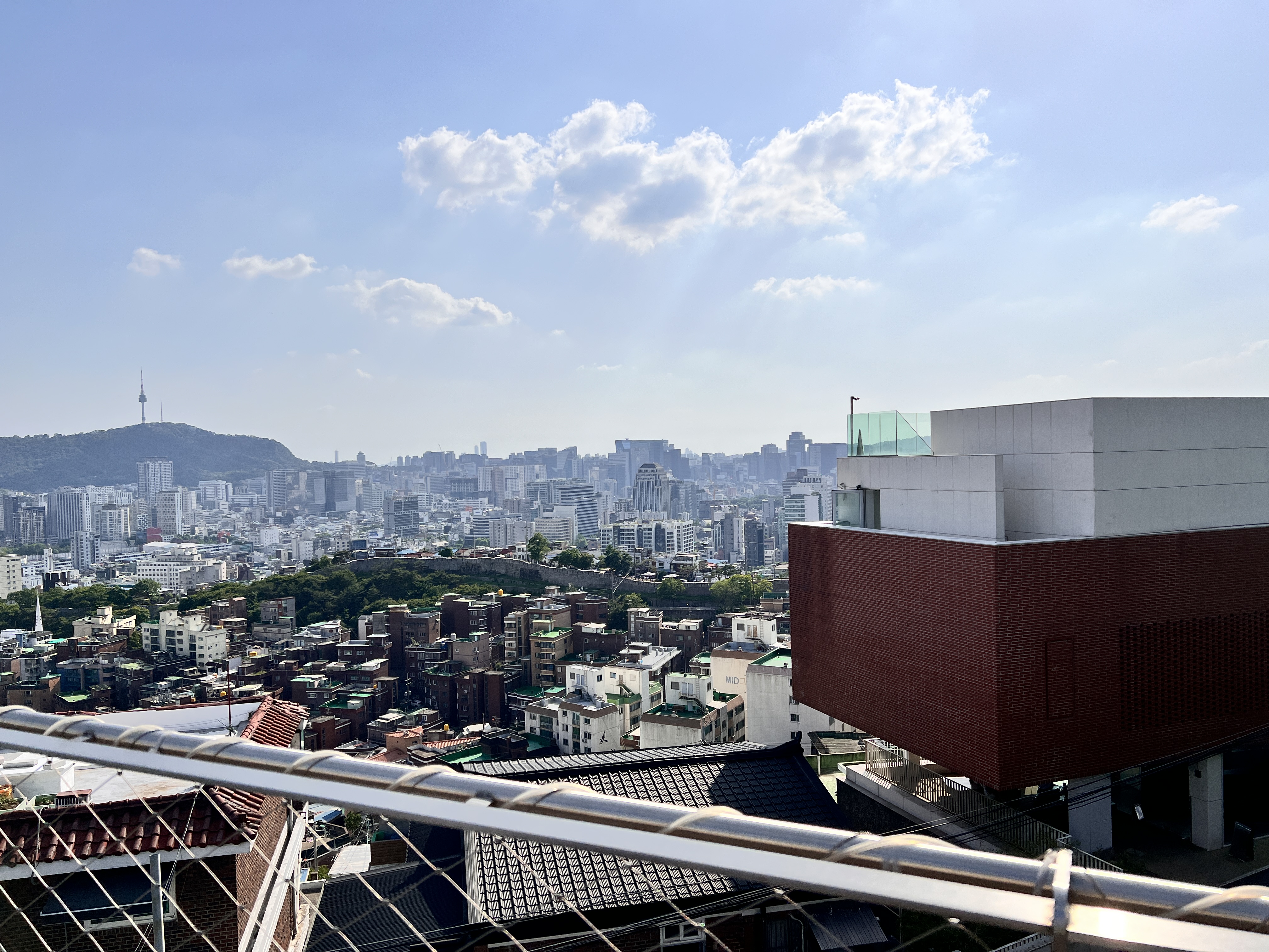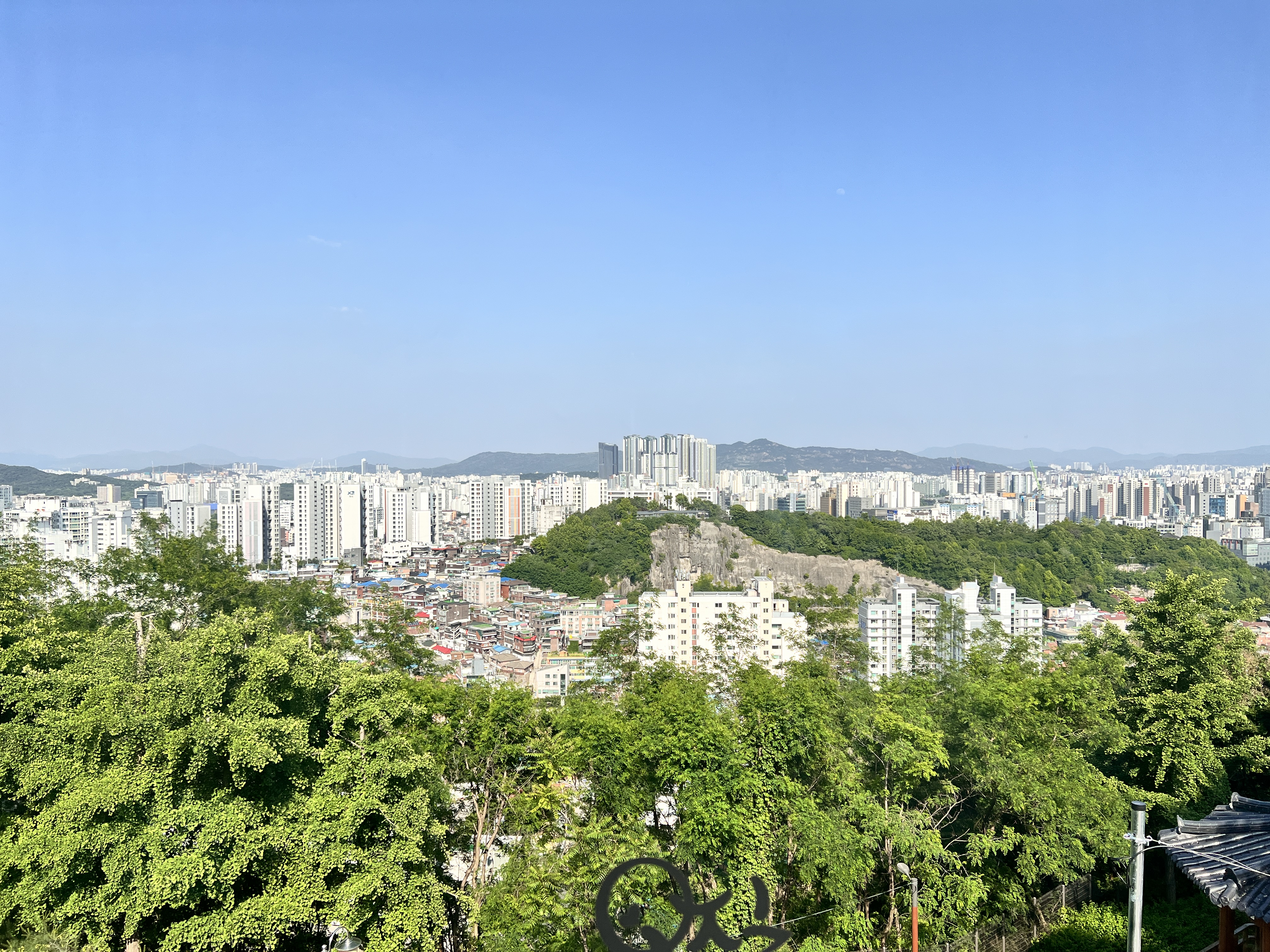 창밖으로 보이는 창신동의 옛스러운 풍경과 함께 채석장의 독특한 경관이 눈에 들어왔다. 그 채석장을 보며 일제시대에도 서울 한복판에서조차 수탈이 일어났다는 사실이 떠올라, 역사 속의 아픔이 고스란히 느껴졌다. 창신동 채석장은 과거에 이 지역의 중요한 산업 현장이었고, 지금은 그 흔적이 남아 있어 특유의 거친 아름다움을 간직하고 있었다. 그 풍경을 바라보며 마치 과거와 현재가 공존하는 듯한 느낌을 받았다. 특히 낮 시간에 옥상에서 바라본 서울의 풍경은 정말 멋졌다. 맑은 하늘 아래 펼쳐진 도심의 모습은 낙타카페에서의 시간을 더욱 특별하게 만들어 주었다.