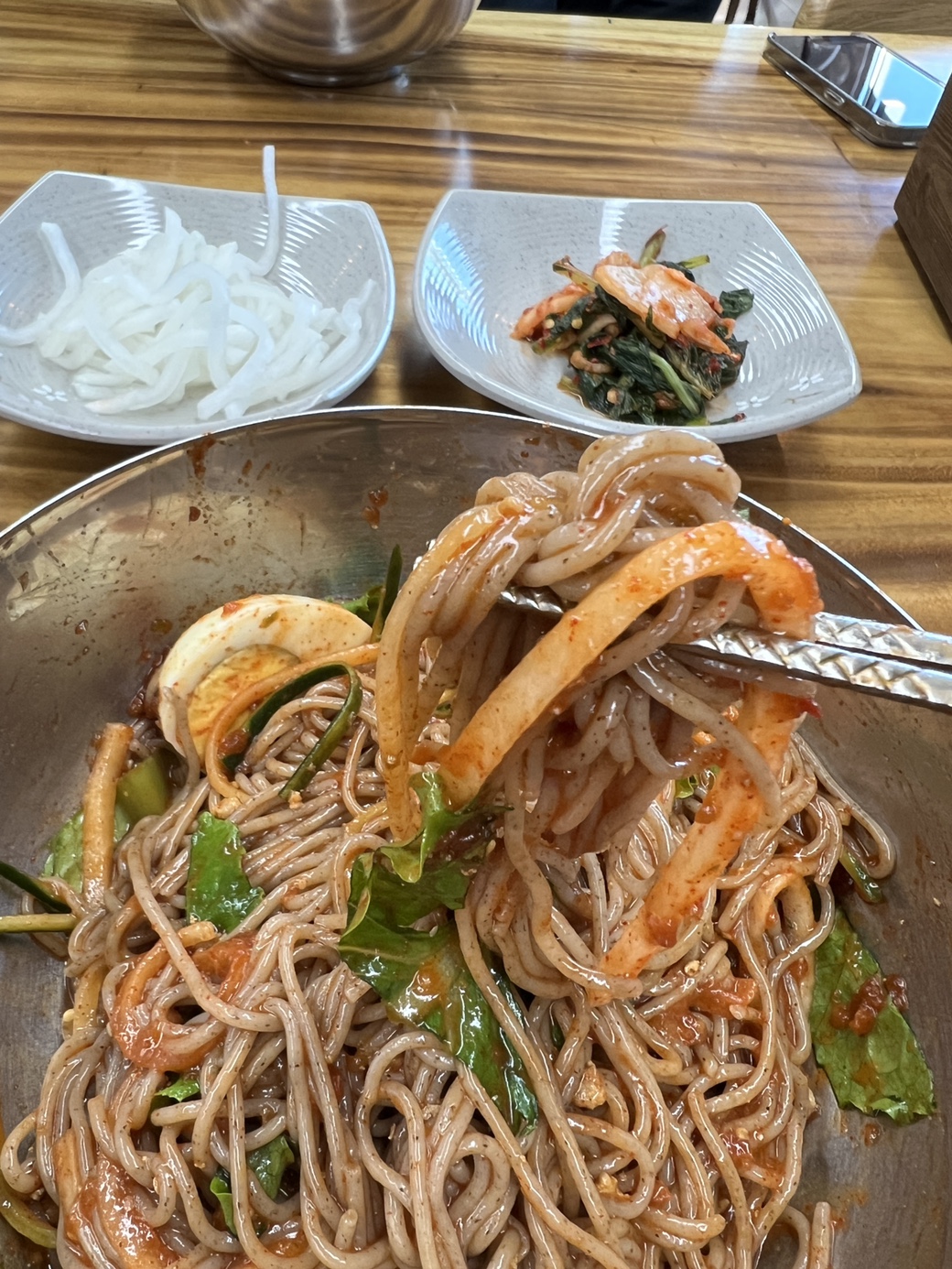 반찬으로 나온 무생채도 별미였다. 신선하고 아삭한 무가 입맛을 돋워주면서, 막국수와 잘 어울렸다. 간단한 반찬이지만, 맛의 균형을 맞추는 데 큰 역할을 했다.