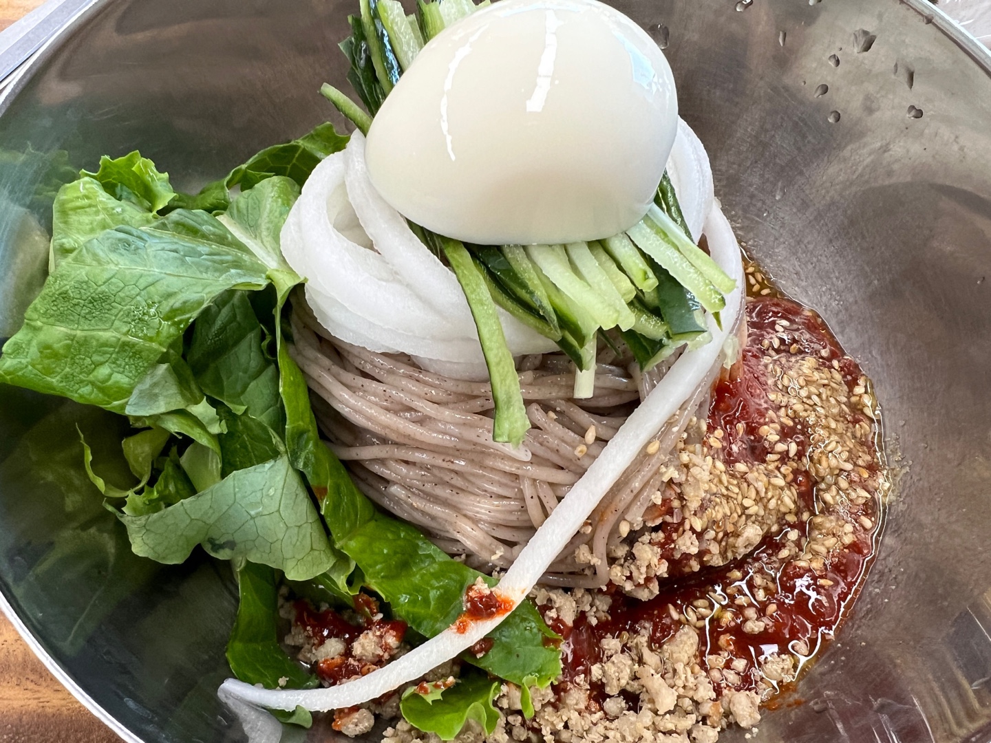 고명으로 나온 야채도 신선함이 느껴졌다. 입 안에서 아삭한 식감이 살아있어서, 국수의 부드러운 면과 매콤한 양념, 그리고 신선한 채소가 조화롭게 어우러졌다. 특히, 매운 양념이 신선한 야채와 함께 씹히는 느낌이 상쾌하고 맛있었다.