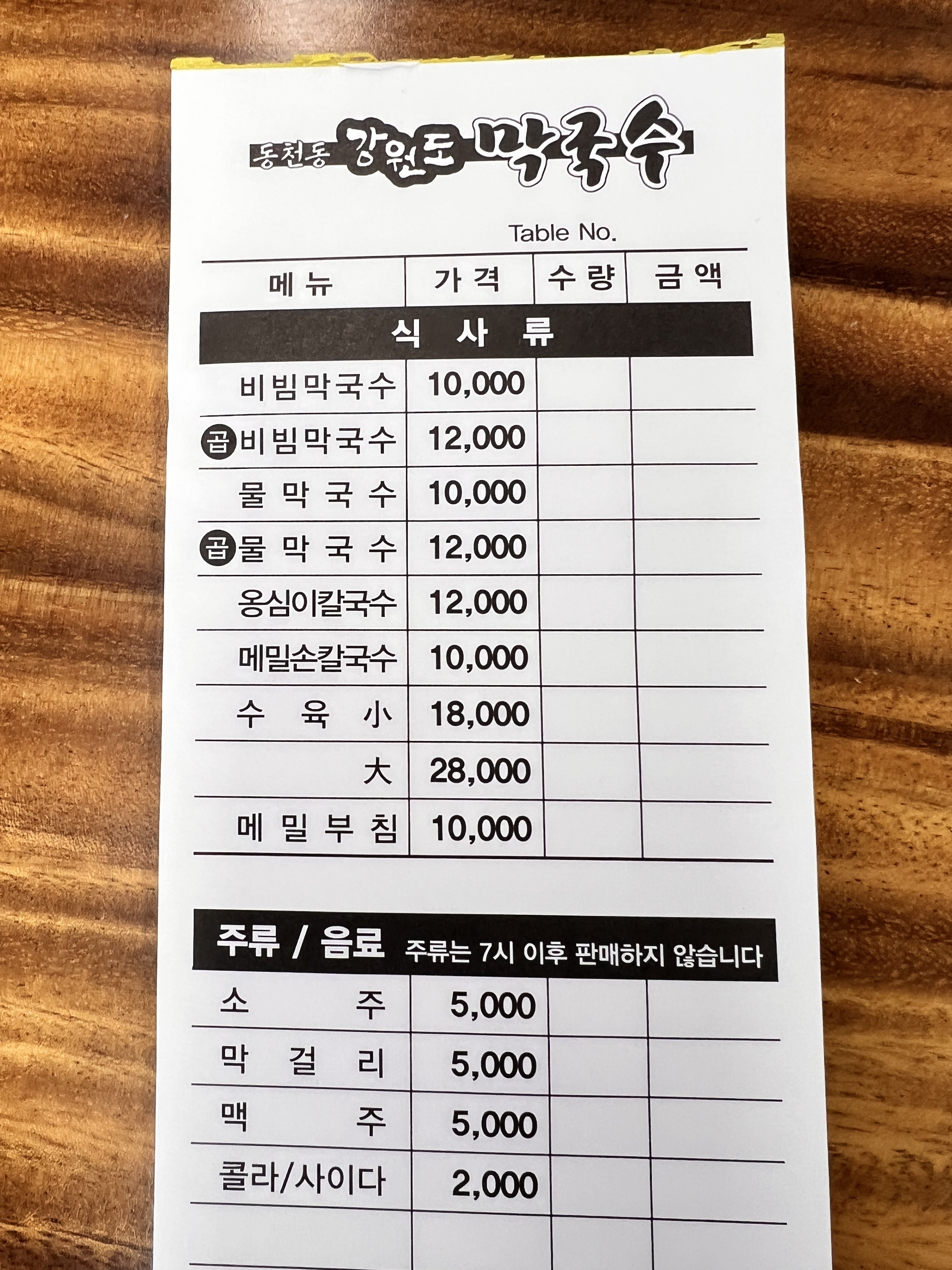 식사는 오후 2시가 조금 지나서 방문했는데, 가게 내부는 한산한 분위기였다. 넓은 실내에는 손님이 2~3테이블 정도만 앉아 있었고, 여유롭게 식사를 즐기기 좋았다. 조용하고 편안한 분위기에서 막국수를 먹을 수 있었던 점이 큰 장점이었다.