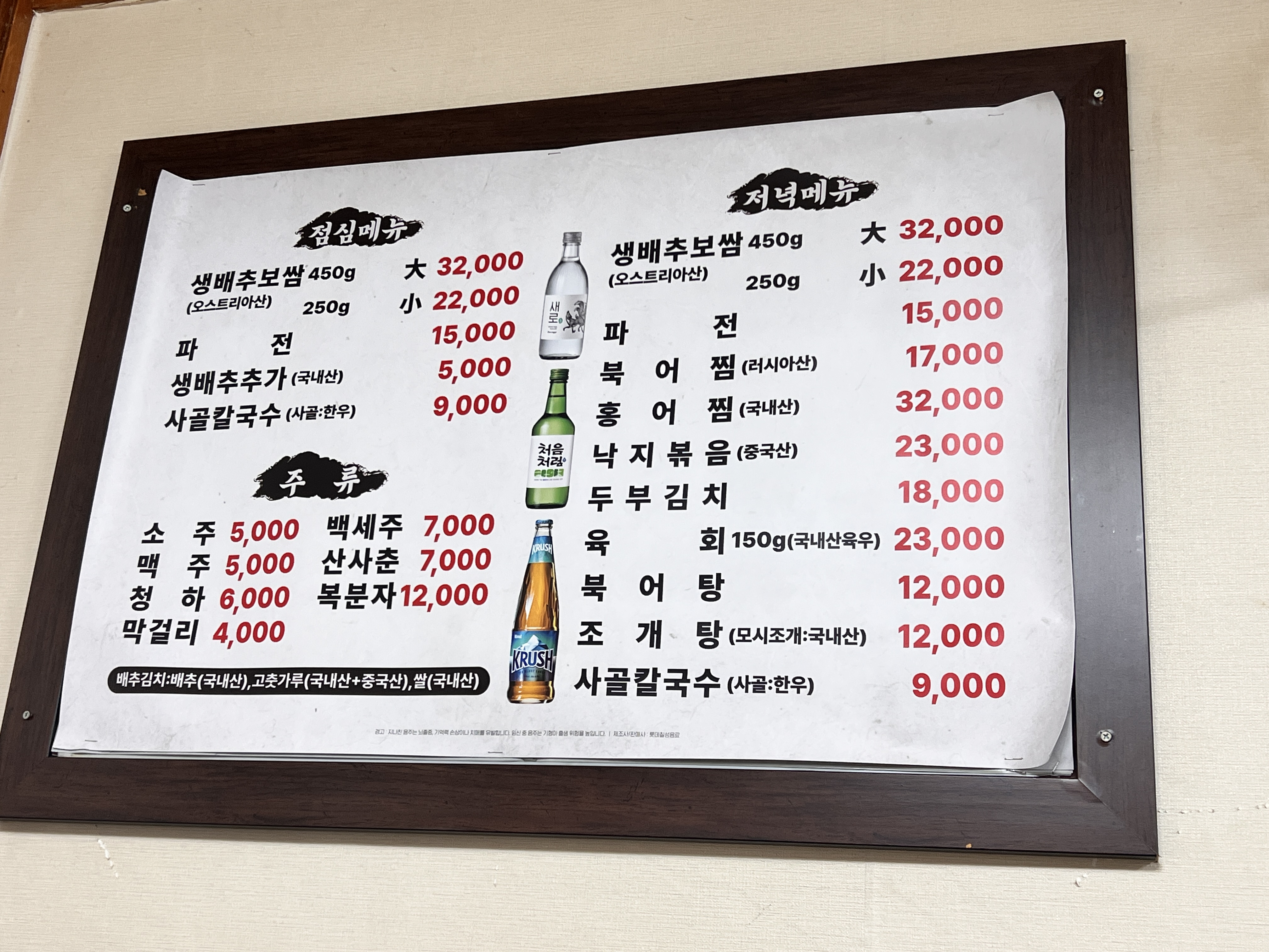 그럼에도 불구하고 인상 깊었던 장면이 있다. 생각보다 젊은 손님들이 많았다는 점이다. 친구들끼리, 연인끼리 양반다리로 앉아 수육을 나눠 먹고 칼국수를 후루룩 먹으며 웃고 떠드는 모습이 자연스럽다. 요즘은 보기 드문 풍경이라 오히려 신선하게 느껴졌다. 음식 맛보다 그 장면 자체가 이 집을 기억하게 만드는 요소처럼 보였다.