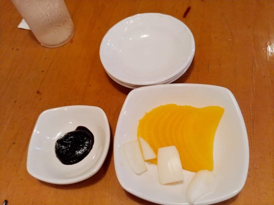 반찬으로 단무지, 양파와 춘장을 준다. 특별한 것은 없다.