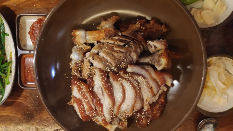 돼지 냄새가 나지 않고 적당히 삶아져 야들야들한 식감이 느껴졌다. 간장 양념 또한 적당했다.