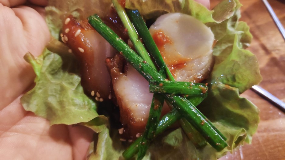 족발이 가장 맛있을 때는 쌈으로 4쌈이나 5쌈 정도이다.